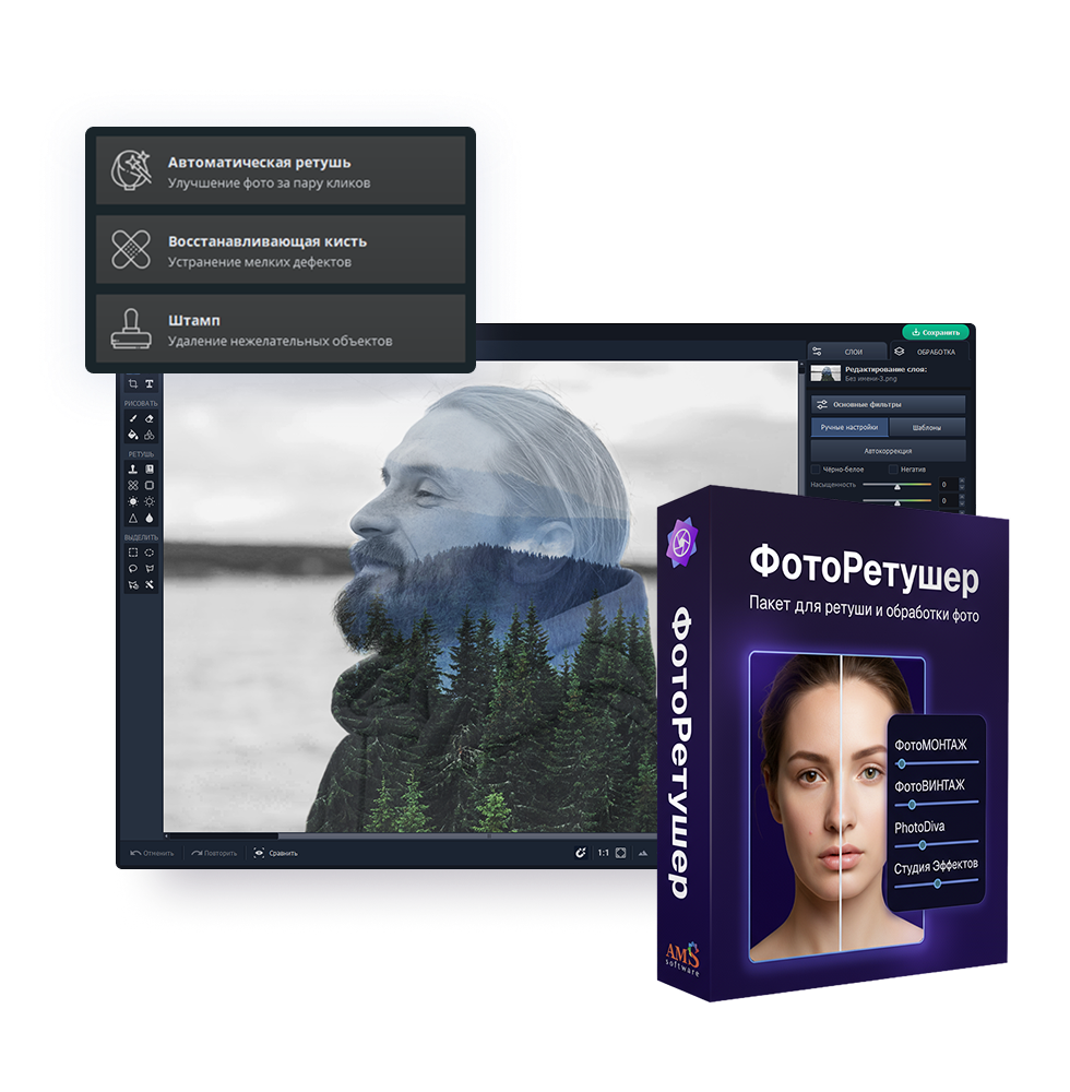 Откройте для себя увлекательный мир фототворчества! Редактируйте снимки, создавайте эффектные коллажи и анимированные слайд-шоу, а также реставрируйте фото и добавляйте стильные винтажные эффекты.