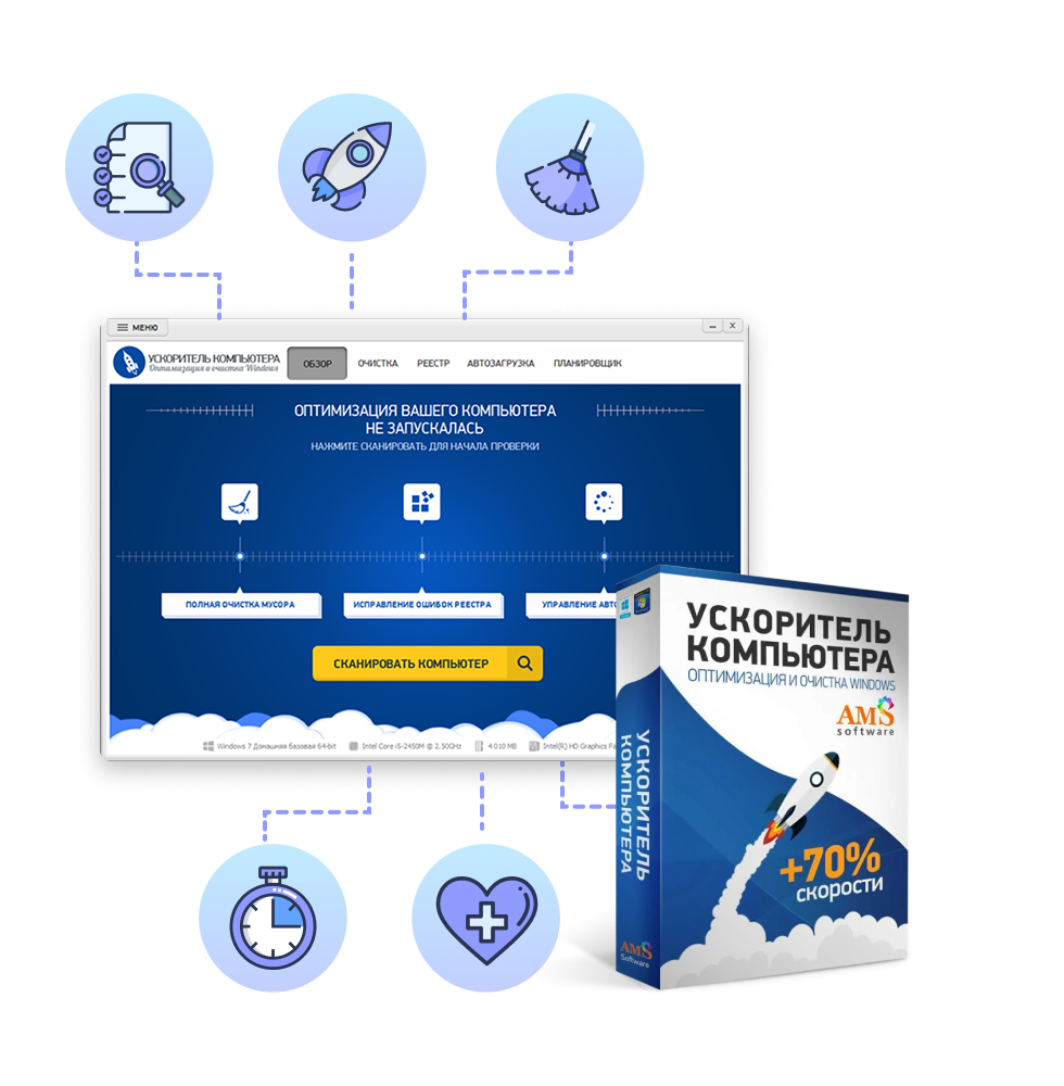 - Ускоряет работу компьютера до 70%