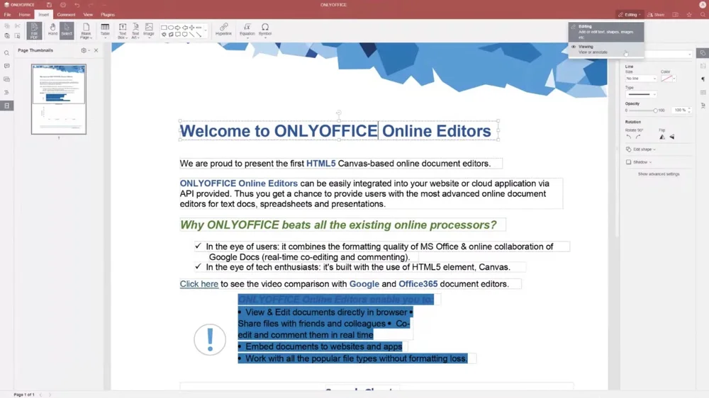 ONLYOFFICE PDF Editor — офисный пакет с ПДФ-модулем