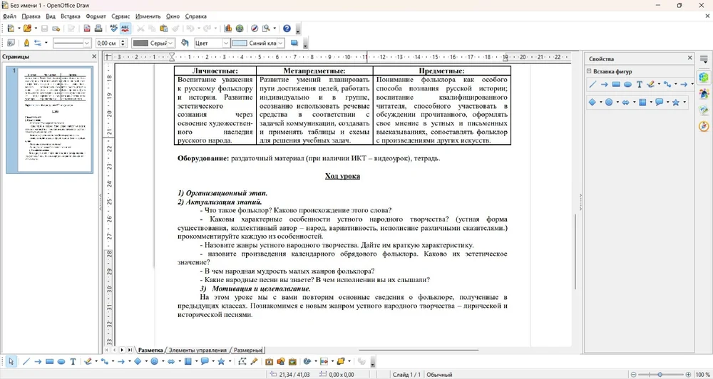 - интеграция с модулями OpenOffice, например, Writer и Calc, для оформления таблиц или текста;
