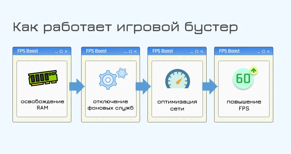 Стоит отметить, что приложения для ускорения игр — это не чистильщики и не софт для разгона. От первых они отличаются тем, что в основном не предназначены для удаления данных с компьютера. Если же сравнивать со вторым видом ПО, бустеры более безопасны. Они не изменяют BIOS и настройки оборудования, а улучшают работу на уровне операционной системы. Поэтому вы не рискуете повредить видеокарту и другое железо.
