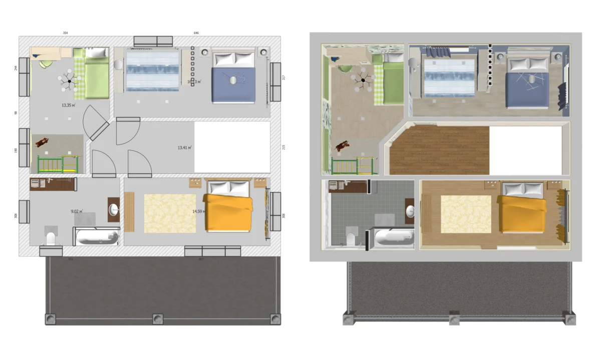 - Готовый план и реалистичная визуализация в 3D