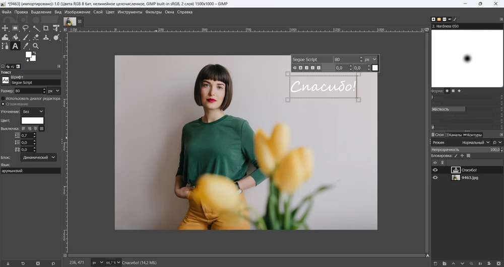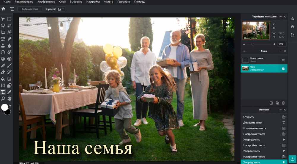 Функциональный и мощный графический редактор, часто используемый для добавления текста при оформлении мемов, поздравлений и других вещей.