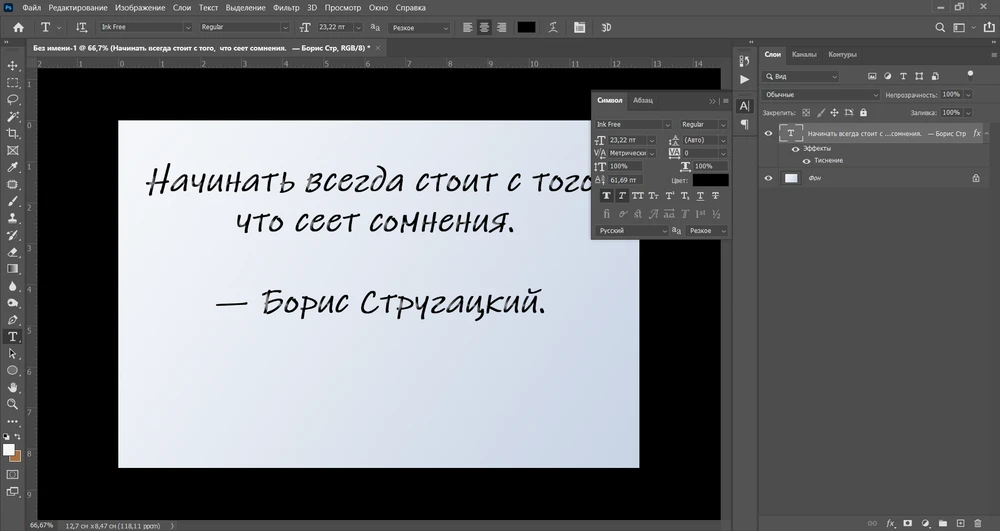 Самая популярная программа для редактирования текста на фото среди профессиональных дизайнеров и фотографов, с миллионами шрифтов и группировкой по гарнитурам. В Фотошопе надписи можно менять таким образом, что они будут повторять форму предмета. Это позволяет «примерить» надпись на упаковку продукта или «приложить» к телу текстовую татуировку. Визуально все будет выглядеть очень правдоподобно.